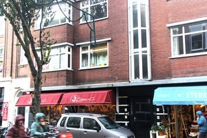 Onze ‘Indische Wandeling Statenkwartier’ start bij De Twee Tantes, het beeldje van Loek Bos aan het Frederik Hendrikplein en daarna lopen we altijd even naar het monumentje van Molkenboer: kleurrijk mozaïek. Dat fonteintje staat er ter nagedachtenis van Albert Vogel sr. Vader was voordrachtskunstenaar en zijn zoon werd dat ook.