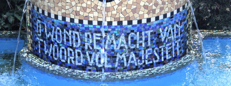 Onze ‘Indische Wandeling Statenkwartier’ start bij De Twee Tantes, het beeldje van Loek Bos aan het Frederik Hendrikplein en daarna lopen we altijd even naar het monumentje van Molkenboer: kleurrijk mozaïek. Dat fonteintje staat er ter nagedachtenis van Albert Vogel sr. Vader was voordrachtskunstenaar en zijn zoon werd dat ook.